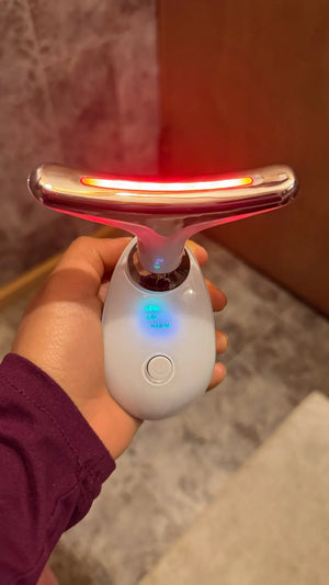It uses gentle vibrations to stimulate blood flow and relax muscles, enhancing skin appearance and reducing tension.